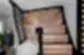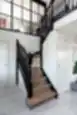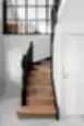 Klasikiniai laiptai, tampantys pagrindinio aukšto akcentu. Juodos detalės subtiliai pabrėžia vientiso uosio medžio struktūrą pakopose ir priešpakopiuose.