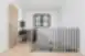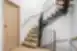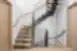 Laiptai, kuriuose dominuoja metalas. Centrinė laiptasija, metalinis turėklas ir masyvo pakopos sukuria švarų, modernų įspūdį.