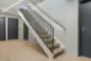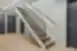 Atviros L-formos pakopos ir šoninės laiptasijos kuria lengvą vaizdą. Metalinis turėklas montuojamas iš viršaus, o sienos porankis su LED apšvietimu subtiliai papildo dizainą.