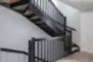Standartiniai ąžuoliniai laiptai su šonine laiptasija, pritaikyti prie namų interjero. Pakopos beicuotos ir lakuotos, detalės – dažytos juodai. Galimas spalvų pasirinkimas pagal RAL ir NCS paletes.